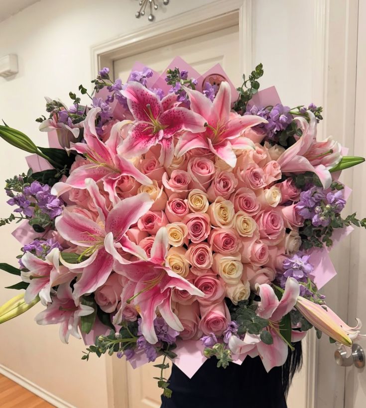 bouquet de rose blanche et rose des lys fleurs violette feuille verte