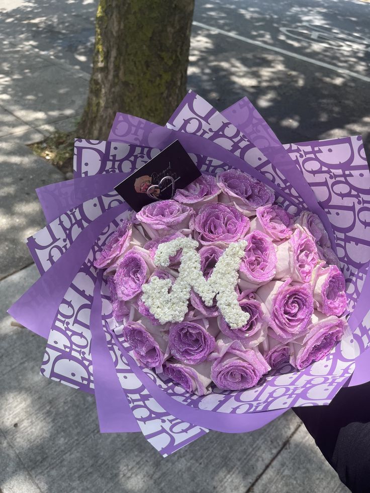 bouquet violet avec lettre